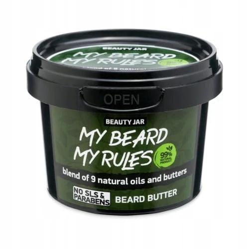 Twoja broda zasługuje na najlepszą pielęgnację. Beauty Jar My Beard My Rules to naturalne masło do brody, które dzięki unikalnej formule opartej na aż 9 olejkach roślinnych odżywia, zmiękcza i nadaje blask Twojemu zarostowi. To kosmetyk stworzony dla mężczyzn, którzy chcą zadbać o zdrowy wygląd brody i wąsów, a przy tym cenią sobie naturalny skład i wygodę stosowania.